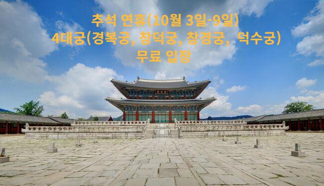 국가유산 (4대궁·종묘·왕릉) | 10월 3일 ~ 10월 9일 | 창덕궁 후원 제외. 예약제였던 종묘도 자유 관람 가능 |