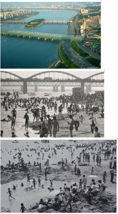 근대 이후 한강은 산업화와 도시화의 상징이 되었다. 1960년대 서울이 확장되면서 강은 본격적으로 도시의 품에 들어왔다. 한강의 모래사장에서 수영을 즐기던 여름의 기억은 이제 사진 속 장면이 되었고, ‘한강의 기적’이라 불린 경제성장은 강을 또 한 번 바꾸어놓았다.