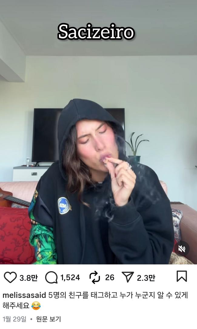 멜리사 사이드 인스타그램 캡쳐 사진(포르투갈어 “sacizeiro”대마초를 피우는 사람을 뜻하는 은어) *본 사진은 범죄 수사를 설명하기 위한 보도용 자료입니다. 대마초 등 마약류의 흡연·소지는 불법 행위로 형사처벌 대상이 됩니다.