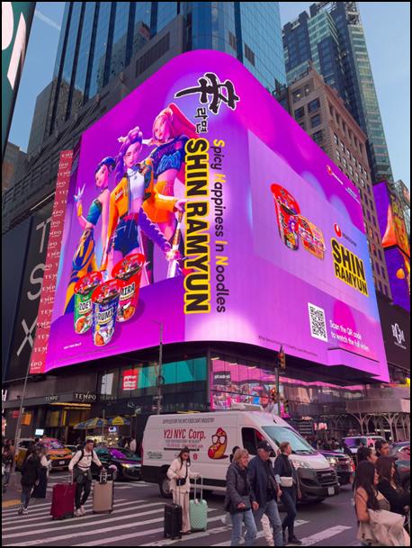 농심 신라면 글로벌 캠페인 모습 (2025년 10월 18일 뉴욕 타임스퀘어)