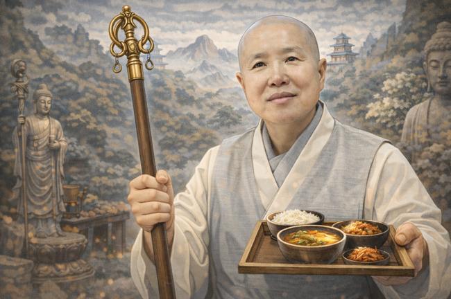 이 캐릭터의 무공은 비움입니다. 남들이 재료를 더 얹을 때, 스님은 오히려 덜어냅니다.