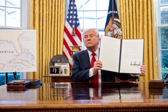 2025년 3월 26일, 백악관에서 트럼프 대통령이 자동차(수입차) 관세를 발표하고 있다. (사진 출처: Official White House Photo by Molly Riley)
