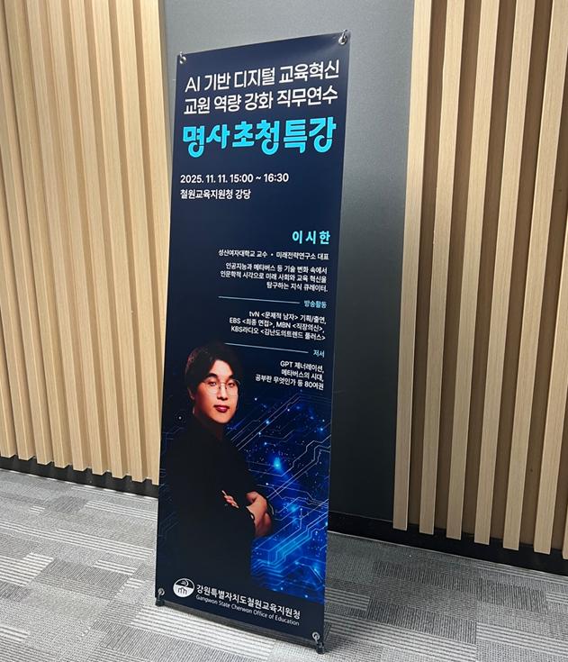 11월 11일(화) 오후 3시, 철원교육지원청 대강당에서 진행된 이시한 작가의 ‘AI Generation & Edu’ 명사 특강이 큰 호응 속에 마무리됐다.