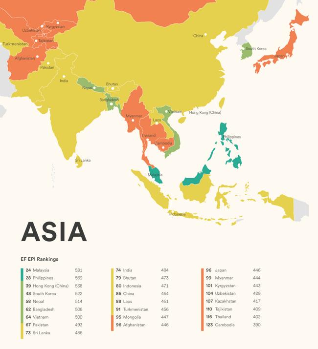 English Proficiency Index(영어 능력 지수) 아시아 부문 순위