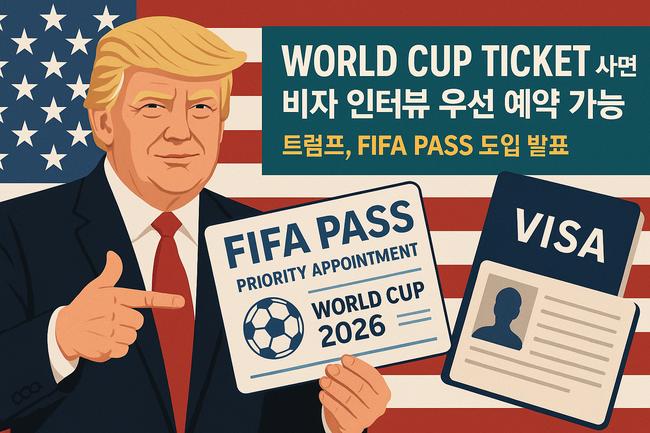 미국 정부가 2026년 북중미 월드컵을 앞두고 파격적인 제도를 도입한다. 'FIFA PASS(2026 월드컵 입국 예정자 비자 인터뷰 우선 예약 시스템)'를 통해 월드컵 공식 티켓 보유자에게 미국 비자 인터뷰 우선 예약 기회를 제공하는 것이다.