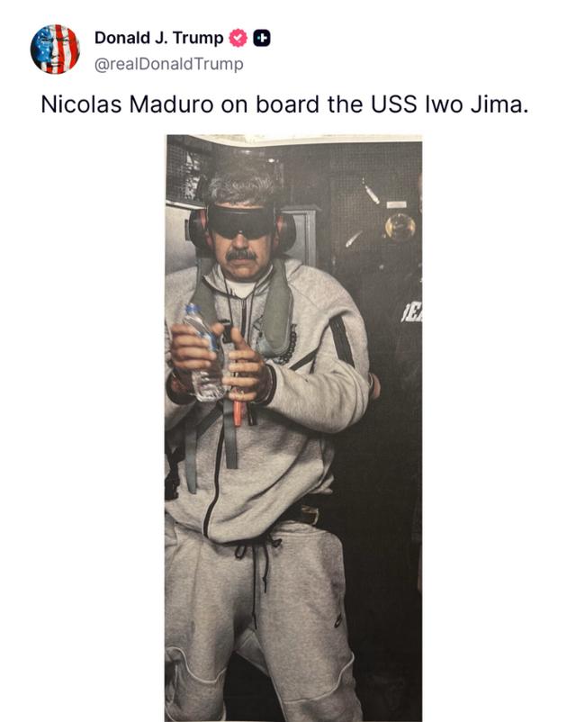 트럼프가 트루스 소셜에 공개한 체포된 마두로 모습