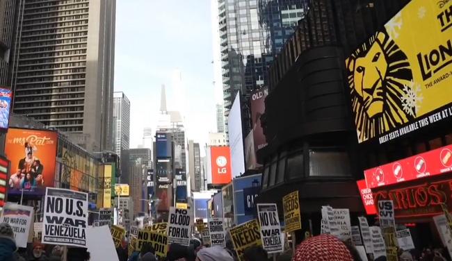 No War on Venezuela 시위가 벌어진 뉴욕 타임 스퀘어 = X 캡쳐